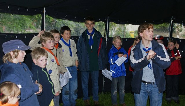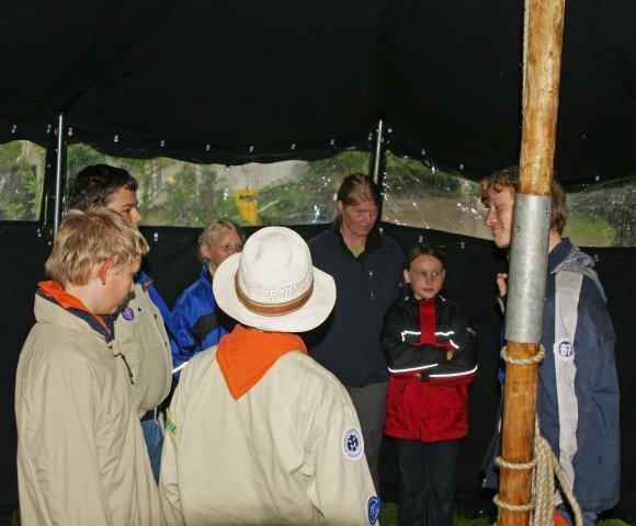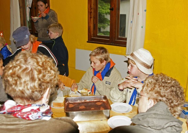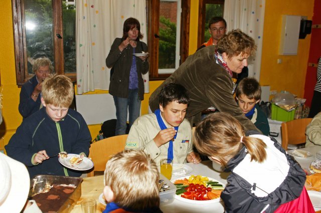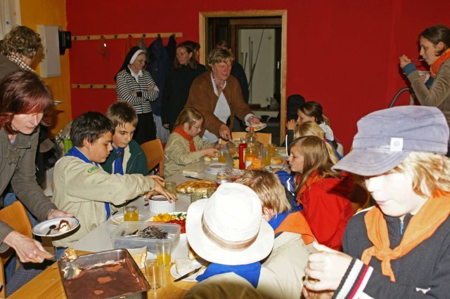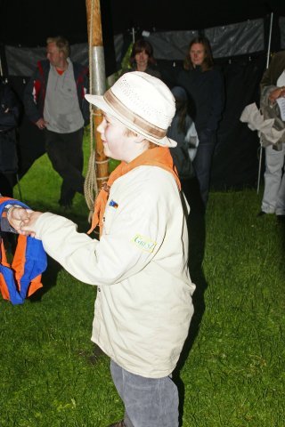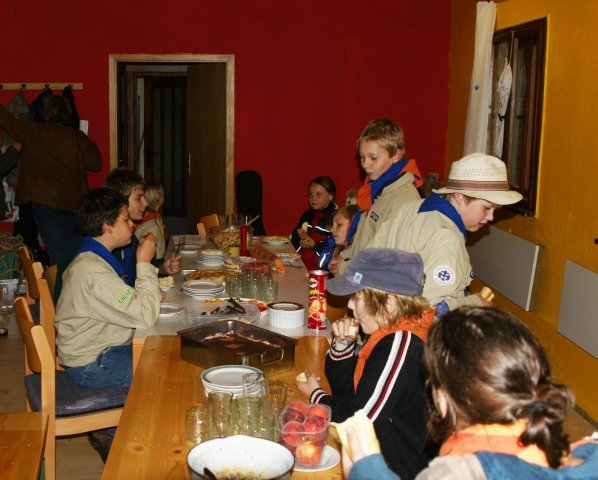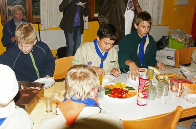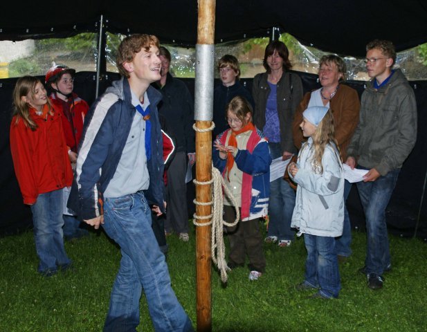 Am vergangenen Freitag, am 12.6.09, war bei den Greifswalder Pfadfindern der DPSG (deutsche Pfadfinderschaft Sankt Georg) ein großes Fest. Dort fanden zwei Umstufungen, sieben Versprechen und vier Aufnahmen statt. Zu Anfang wurde im Regen eine Jumbo-Jurte aufgebaut. (Es gibt fünf typische Pfadfinderzelte. Hier der Größe nach von klein bis groß aufgelistet: Kröte, Lokomotive, Kohte, Weißzelt [klein], Jurte, Jumbo-Jurte und Weißzelt [groß].) Im Pfadiheim wurde derweil ein Buffet errichtet. Danach kamen alle in der Jumbo-Jurte zusammen um das Lied „Flinke Hände, Flinke Füße“ zu singen. Nun mußte jeder, der sein Versprechen ablegen wollte, Fragen beantworten. Dazu wurden zwei Mannschaften gebildet. Am Ende wußte doch jedes Team die Fragen richtig zu beantworten. Jeder der sein Versprechen ablegen wollte, hatte sich eines ausgedacht, mußte eines nachsprechen oder zumindest alle dort vorkommenden Kriterien bestätigen. Dann wurde noch das Lied „Heute hier, morgen dort“ gesungen. Nun machten sich alle über das vorbereitete Essen her. Anschließend war noch etwas Zeit zum Spielen, während die Leiter im Haus saßen und Sachen mit den Eltern besprachen. Die ganze Veranstaltung endete um 9:30 Uhr. (Tobias Altripp, 11 Jahre)