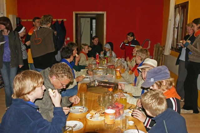 Am vergangenen Freitag, am 12.6.09, war bei den Greifswalder Pfadfindern der DPSG (deutsche Pfadfinderschaft Sankt Georg) ein großes Fest. Dort fanden zwei Umstufungen, sieben Versprechen und vier Aufnahmen statt. Zu Anfang wurde im Regen eine Jumbo-Jurte aufgebaut. (Es gibt fünf typische Pfadfinderzelte. Hier der Größe nach von klein bis groß aufgelistet: Kröte, Lokomotive, Kohte, Weißzelt [klein], Jurte, Jumbo-Jurte und Weißzelt [groß].) Im Pfadiheim wurde derweil ein Buffet errichtet. Danach kamen alle in der Jumbo-Jurte zusammen um das Lied „Flinke Hände, Flinke Füße“ zu singen. Nun mußte jeder, der sein Versprechen ablegen wollte, Fragen beantworten. Dazu wurden zwei Mannschaften gebildet. Am Ende wußte doch jedes Team die Fragen richtig zu beantworten. Jeder der sein Versprechen ablegen wollte, hatte sich eines ausgedacht, mußte eines nachsprechen oder zumindest alle dort vorkommenden Kriterien bestätigen. Dann wurde noch das Lied „Heute hier, morgen dort“ gesungen. Nun machten sich alle über das vorbereitete Essen her. Anschließend war noch etwas Zeit zum Spielen, während die Leiter im Haus saßen und Sachen mit den Eltern besprachen. Die ganze Veranstaltung endete um 9:30 Uhr. (Tobias Altripp, 11 Jahre)