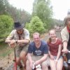Nachdem der erste Kampf am Freitagabend schon gegen die hiesige Mückenplage ausgetragen wurde – und er wurde nicht immer gewonnen –, ging es samstagmorgens auf die Draisinenstrecke von Fürstenberg nach Templin. Mit stetigem Tritt wurden etliche Kilometer per Fahrraddraisine absolviert. Doch des Sports nicht genug, währenddessen mussten auch noch zwei Aufgaben erfüllt werden. Zum einen wurde das Wissen über Sport und Doping via Fragekatalog auf die Probe gestellt, zum anderen war Kreativität gefragt, indem mit einem Sammelsurium an Bastelkram etwas Drehendes gebaut werden musste. Inspiriert von einem nicht ganz vollem Magen entstand beispielsweise ein Model vom Schwein am DREH-Spieß.